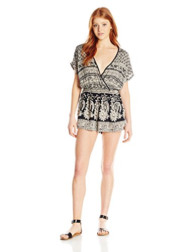 Angie Women's Juniors Surplus Printed Romper, Black, Medium