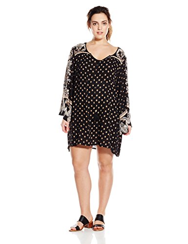 Angie Women's Juniors Plus-Size Black Printed Bell-Sleeve Dress, 2X