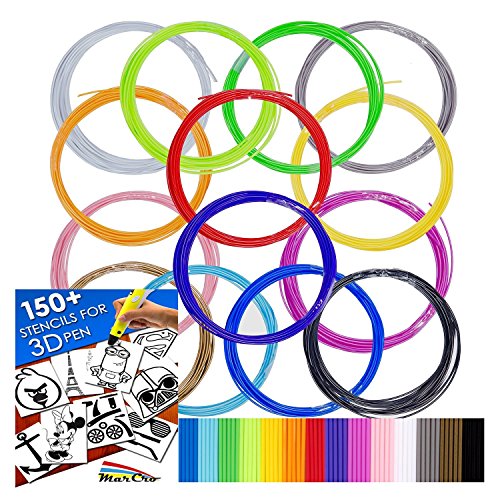 320ft Premium Quality Filaments for 3D Pen - 1.75 ABS - 16 colors of which 2 Glow in Dark - 150 Bonus Stenicls (Downloadable PDF eBook) - Sample Fun Pack Filaments - 20 feet per color