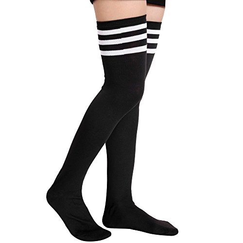 Avidlove Women Leg Warmers Students Athlete Thigh High Socks Stripe Top Stockings Black (FBA) L