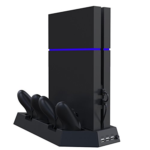 Tontec PS4 Vertical Stand Cooling Fan Station, Upgraded PlayStation 4 Accessories Stand with Cooler Fan 5V 1A Charger Dock and USB Hub Splitter Extension for PS4 Console DualShock 4 Controller