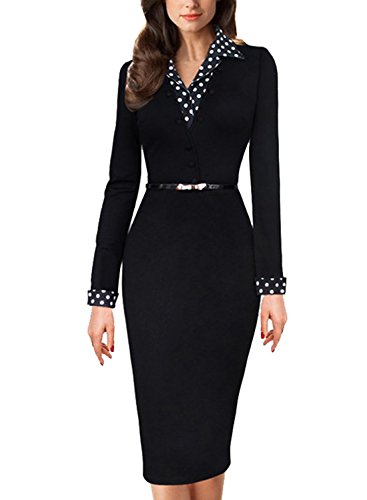 Meikeer Women's Vintage Black Polka Dot Collared Business Party Pencil Dress
