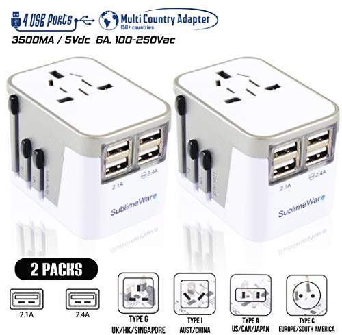 Power Plug Adapter - International Travel - (Pack of 2) w/4 USB Ports Work for 150+ Countries - 220 Volt Adapter - Travel Adapter Type C Type A Type G Type I f for UK Japan China EU Europe European