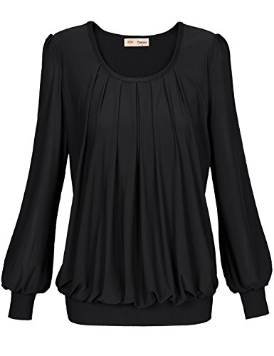 Timeson Women's Long Sleeve Scoop Neck Pleated Front Fitted Blouse Tops