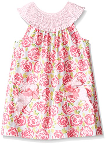 Mud Pie Baby Girls' Sleeveless Smocked Neckline Sun Dress, Pink Flowers/Bunny, 6-9 Months