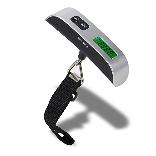 [Backlight LCD Display Luggage Scale] Foxpic Digital Hanging Postal Luggage Scale 110lb/50kg Capacity with Tare Function and Temperature Sensor -Silver/Black