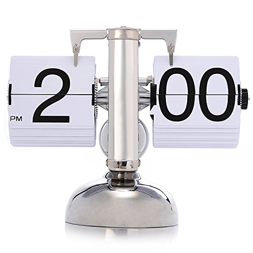 KABB Modern Digital Mechanical Retro Flip Dоwn Clock wіth Internal Gear Operated (White)