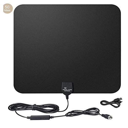 Sinsun Flat Amplified HDTV Antenna - 50 Miles Range with Built-in Amplifier Signal Booster and 15 Feet Coax Cable for Indoor Using