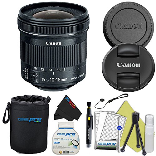 Canon EF-S 10-18mm f/4.5-5.6 is STM Lens for Canon DSLR Cameras + Pixi-Basic Accessory Kit
