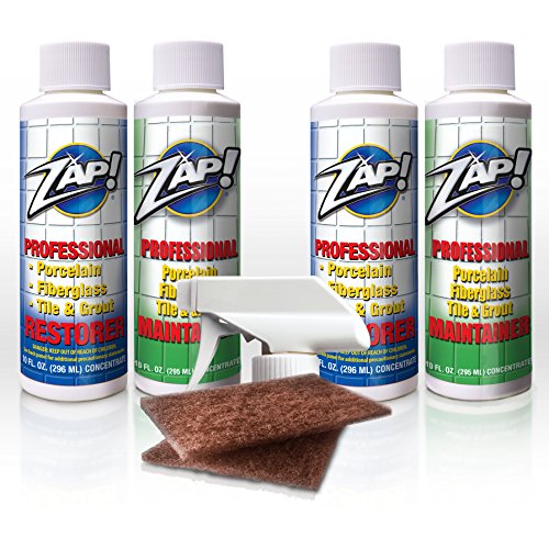 Zap! Professional Restorer & Maintainer for Porcelain, Tile & Grout, Fiberglass and Real Metals Like Chrome, Brass and Copper.