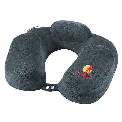 Andake Foldable Neck Pillow, Quick Inflating Deflating Comfortable Portable with Detachable Pillowcase (Gray/Blue, Mouth Blowing/Push-Button Blowing) (Mouth Blowing Grey)
