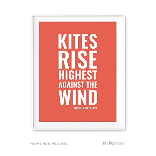 Andaz Press Motivational Wall Art, Kites Rise Highest Against The Wind, Winston Churchill, 8.5x11-inch Inspirational Success Quotes Office Home Gift Print, 1-Pack, UNFRAMED