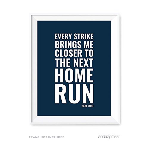 Andaz Press Motivational Wall Art, Every Strike Brings me Closer to The Next Home Run, Babe Ruth, 8.5x11-inch Inspirational Success Quotes Office Home Gift Print, 1-Pack, UNFRAMED