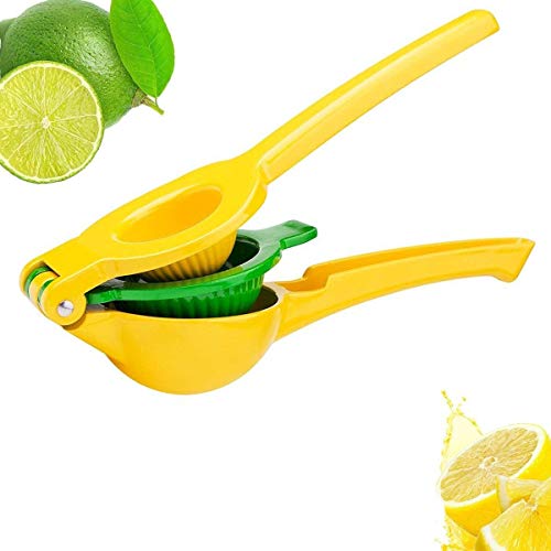 HIEMAO Top Rated Premium Quality Metal Lemon Squeezer-Manual Press Unique 2 Bowls Built in 1 Hand Citrus Juicer Aluminum Lime, one size, Yellow