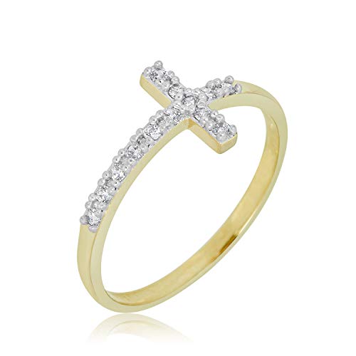 AVORA 10K Yellow Gold Simulated Diamond CZ Sideway Cross Ring