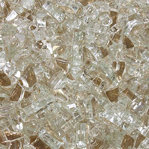 Celestial Fire Glass High Luster, 1/4" Reflective Tempered Fire Glass in Platinum Moonlight, 10 Pound Jar