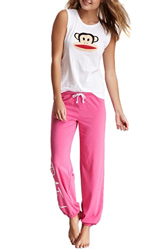 Paul Frank Juniors Julius Tank and Sweatpants Pajama Set (Pink/White, Medium)