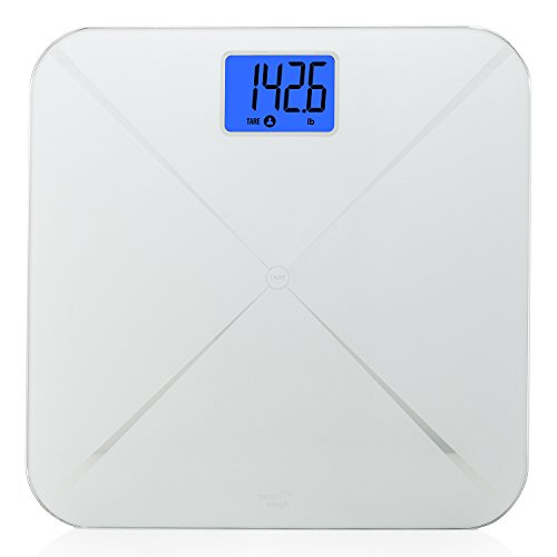 Smart Weigh Smart Tare Digital Body Weight Bathroom Scale with Baby or Pet Tare Weighing Technology, Large LCD Display and Tempered Glass Platform, 440lbs/200kg Capacity (Silver)
