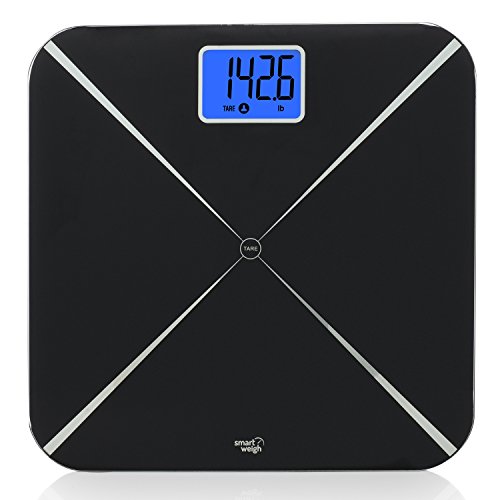 Smart Weigh Digital Body Weight Scale with Baby or Pet Tare Weighing Technology, Bathroom Scale with Large LCD Display and Tempered Glass Platform, 440lbs/200kg Capacity (Black)