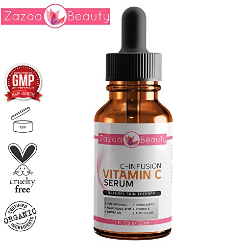 Vitamin C Serum for Face Pure 20% Vitamin C & Hyaluronic Acid Anti-Aging Liquid Facial Serum from Zazaa Beauty with 72% Organic Ingredients Include 5 Tips For Healthy Skin eBook the Best Anti-Wrinkle