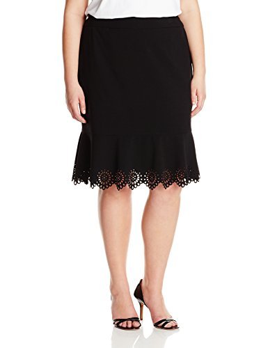Nine West Women's Plus Size Lazer Cut Out Skirt, Black, 14W