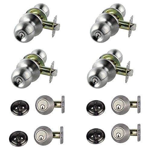 4 Sets of Keyed Fremont(32D) Door Knob and Single Cylinder Deadbolt, Satin Stainless Steel