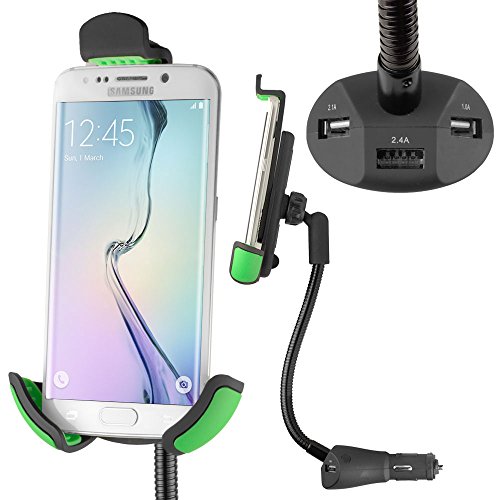 Car Mount, POCKETVOLT Smartphone Car Holder Universal Flexible Arm Smartphone Car Mount Holder with Built-in [5.5 Amps] 3 USB Ports Charger Kit for Apple and Android Devices Black/Green