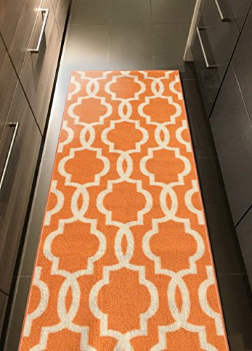 Kapaqua Rubber Backed Fancy Moroccan Runner Non-Slip Rug, 21" W x 60" L, Trellis Orange & Ivory