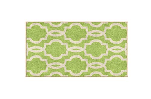 Kapaqua Rubber Backed Fancy Moroccan Doormat Accent Non-Slip Rug, 18" W x 32" L, Trellis Green & Ivory