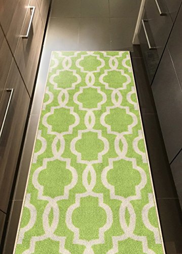 Kapaqua Rubber Backed Fancy Moroccan Runner Non-Slip Rug, 21" W x 60" L, Trellis Green & Ivory