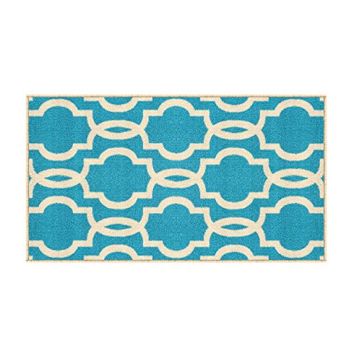 Kapaqua Rubber Backed Fancy Moroccan Trellis Doormat Accent Non-Slip Rug, 18" W x 32" L, Light Blue & Ivory