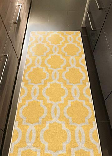 Kapaqua Rubber Backed Fancy Moroccan Runner Non-Slip Rug, 21" W x 60" L, Trellis Yellow & Ivory
