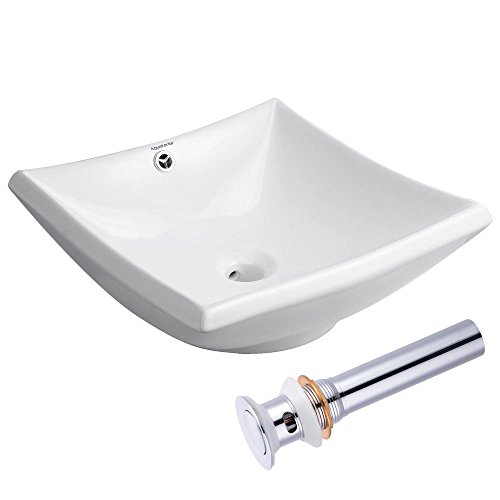 Aquaterior Square White Porcelain Ceramic Bathroom Vessel Sink Bowl Basin with Chrome Drain and Overflow