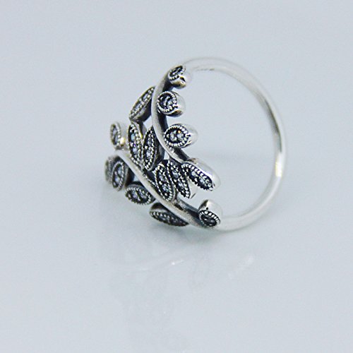 DIY Fits for Pandora Jewelry 100% 925 Sterling Silver Leaves Rings with Clear Cubic Zirconia (6)