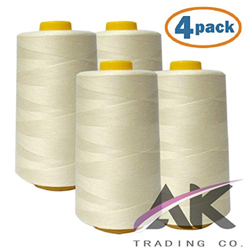 AK Trading 4-Pack Ivory All Purpose Sewing Thread Cones (6000 Yards Each) of High Tensile Polyester Thread Spools for Sewing, Quilting, Serger Machines, Overlock, Merrow & Hand Embroidery.