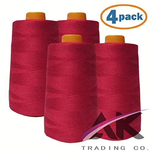 AK Trading 4-Pack RED All Purpose Sewing Thread Cones (6000 Yards Each) of High Tensile Polyester Thread Spools for Sewing, Quilting, Serger Machines, Overlock, Merrow & Hand Embroidery.
