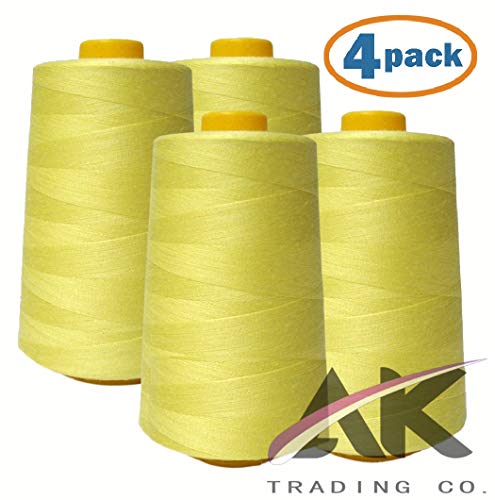 AK Trading 4-Pack Yellow All Purpose Sewing Thread Cones (6000 Yards Each) of High Tensile Polyester Thread Spools for Sewing, Quilting, Serger Machines, Overlock, Merrow & Hand Embroidery.