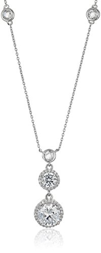 925 Sterling Silver Triple Drop AAA Cubic Zirconia Pendant Enhancer Necklace, 18"
