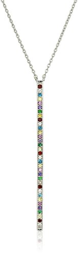 Sterling Silver 50 mm Linear Drop Multi-Color AAA Cubic Zirconia Y-Shaped Necklace, 18" (.34 cttw)