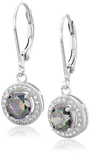 Sterling Silver Mystic Cubic AAA Zirconia Halo Drop Leverback Dangle Earrings (1.9 cttw)