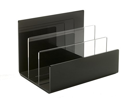 Unum Acrylic Desktop File Organizer - Holds Folders, Mail, Letters, Homework - File Sorter/File Folder Holder/Electronics and Laptop Holder - Handcrafted of Premium Black and Clear Acrylic