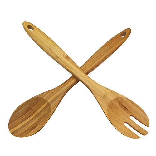 Premium Large Bamboo Salad Servers, Wok Cooking Tool, Stirring Spoons, Sauce Spoons, Nonscratch Cooking Utensils