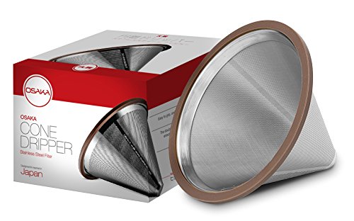Osaka Stainless Steel Pour Over Coffee Dripper with Double Layered Filter, Paperless and Reusable Cone Shaped Filter for Osaka, Chemex, Hario, Bodum and Other Carafes