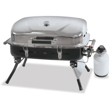 Blue Rhino Outdoor Portable Lp Gas Grill with Warming Rack and Carry Handle, Porcelain Grid, Locking Lid, Ignition System, Stainless Steel Lid