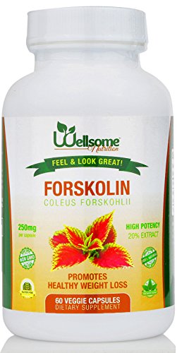 250mg All Natural Forskolin Extract With 20% Forskohlli, Best Weight Loss Formula- 60 Count- By Wellsome Nutrition