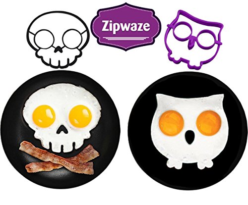Egg Shaper Owl & Skull Set of 2 Nonstick Silicone Egg Ring Mold, Purple Owl Shaped Egg Ring, Black Skull Shaped Egg Ring Food Grade Silicone Fried Egg Pancake Molds