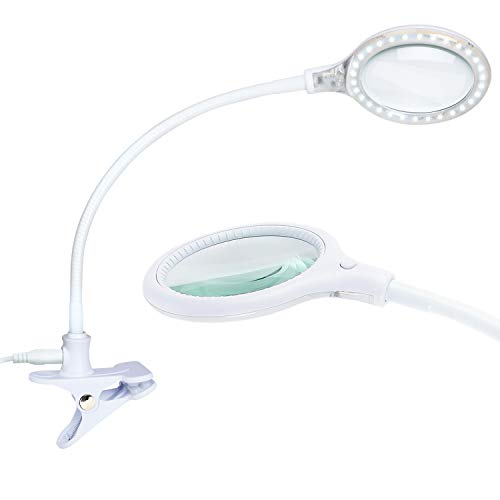 Brightech LightView Flex Superbright LED Magnifier Lamp with Clamp Daylight Bright LED's - Energy-Saver with 1.75X Magnification - White
