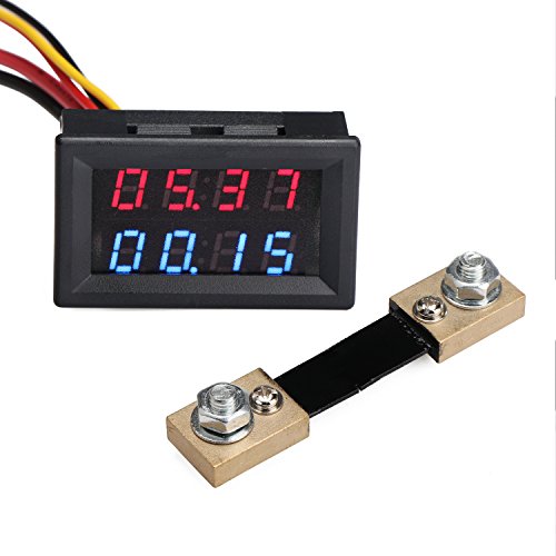 DROK LED Dual Display Voltmeter Ammeter DC 0-100V 100A Voltage Current Meter Digital Volt Amp Monitor Gauge Panel with Shunt