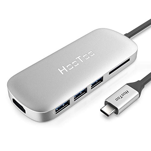 USB C Hub, HooToo USB C Adapter with 100W Type C Power Delivery, HDMI Output, Card Reader, 3 USB 3.0 Ports for 2018/2017/2016 MacBook Pro and Windows Type C Laptop - Silver
