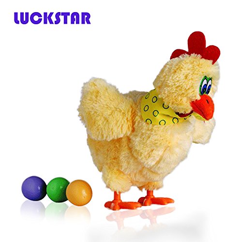 LUCKSTAR Musical Hen Toy, Funny Electric Walking Egg Laying Chicken with Lights and Music for Children and Kids (Yellow)
